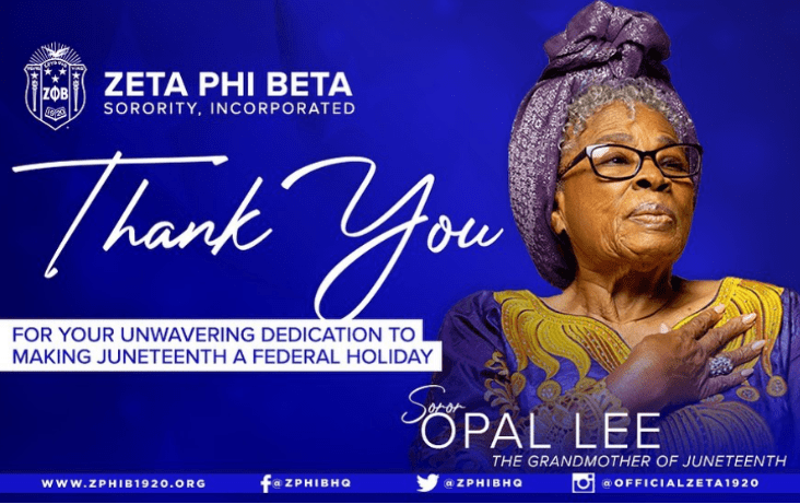 Opal Lee is a member of Zeta Phi Beta Sorority Inc
