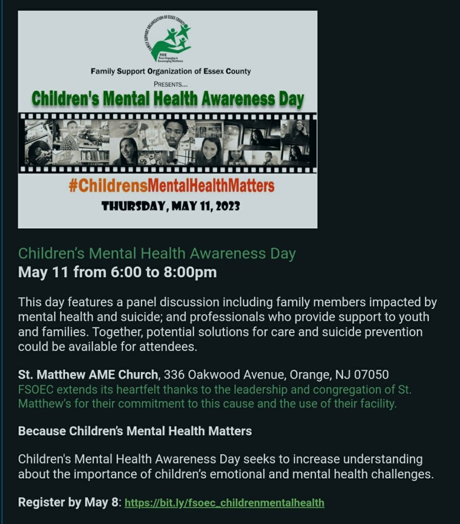 May 11, 2023 6 – 8 pm at St. Matthew’s AME Church, Orange, NJ.
