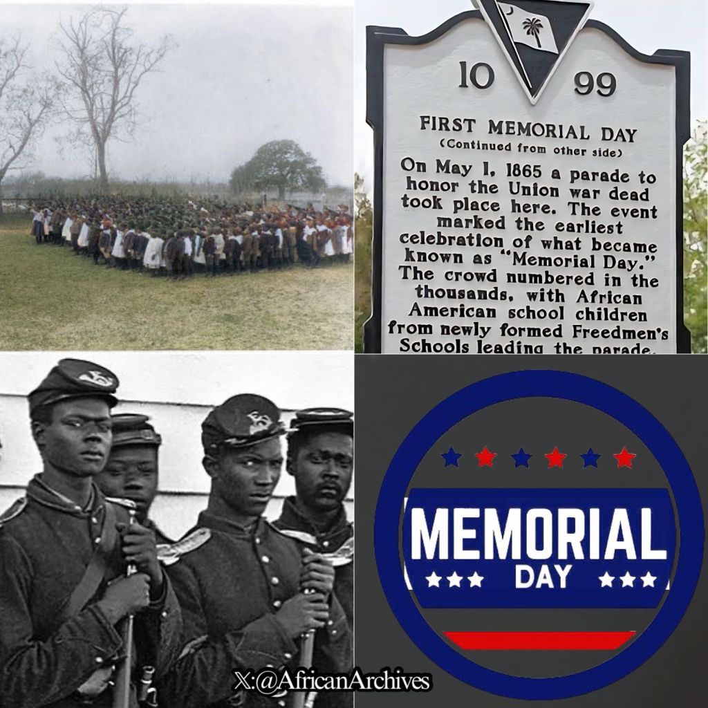 The origin of Memorial Day trace back to 1865 when freed slaves started a tradition to honor fallen Union soldiers and to celebrate emancipation and commemorate those who died for that cause. ❤️🖤💚🫶🏼 In 1865, black people in Charleston, South Carolina, held a series of memorials & rituals to honor unnamed fallen Union soldiers and celebrate the struggle against slavery. One of the largest memorial took place on May 1st 1865. ❤️🖤💚🫶🏼 As the civil war ended, confederates had converted the city’s Washington Race Course & Jockey Club into an outdoor prison. Union captives were kept in horrid conditions and at least 257 died of disease and were quickly buried in a mass grave behind the grandstand. ❤️🖤💚🫶🏼 After the Confederate evacuation of Charleston, black workmen went to the mass grave site, reburied the Union dead properly & built a high fence around the cemetery. ❤️🖤💚🫶🏼 The freed black people, who then, in cooperation with white missionaries and teachers, staged a parade of 10,000 on the track. The procession was led by 3,000 black schoolchildren carrying armloads of roses and singing the Union marching song “John Brown’s Body.” ❤️🖤💚🫶🏼 Several hundreds of black women followed with baskets of flowers, wreaths & crosses. Then came black men marching in, followed by contingents of Union infantrymen. Within the cemetery black children’s choir sang before a series of black ministers read from the Bible. ❤️🖤💚🫶🏼 After the dedication, the crowd dispersed into the infield and did what many of us do on Memorial Day: enjoyed picnics, listened to speeches and watched soldiers drill ❤️🖤💚🫶🏼 Among the full brigade of Union infantrymen participating were the famous 54th Massachusetts and the 34th and 104th United States Colored Troops, who performed a special double-columned march around the gravesite. #blackexcellence ❤️🖤💚🫶🏼 #MemorialDay