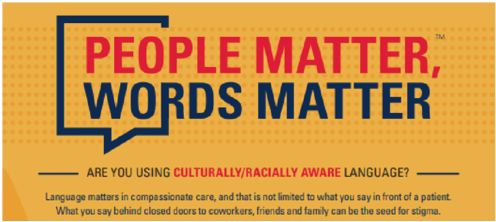 This month we celebrate National Minority Mental Health Awareness Month, so it is appropriate that we consider the impact of our words as we work to reduce the stigma around mental health issues. This is especially true as it pertains to minority populations. Words matter, because in our choice of words we guide others down positive or negative pathways in how they respond and think about a given issue. Moments matter, because on any given day we have hundreds of opportunities to choose words that create awareness and educate others to better possibilities. As professionals, we often spend a great deal of time in preparing for public presentations, being thoughtful about the words we choose, how we present and all the other factors we account for as we hope to educate, change perspectives or invite healthy discussion. Too often we lack the same amount of attention in our conversations and brief interactions that we have with staff, other colleagues and sometimes patients throughout the day. Recently, AHA created a stigma-reduction campaign entitled “People Matter, Words Matter.” This campaign includes posters that provide excellent examples of how one might respond to some examples of language that does not demonstrate cultural or racial awareness.