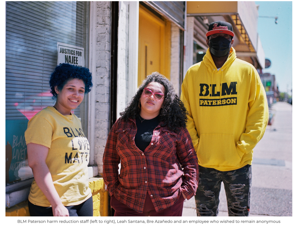 That is, all except for one building across from the city’s columned public library, where there is a constant flow of people entering and exiting. The black awning reads Black Lives Matter Paterson Harm Reduction Center.